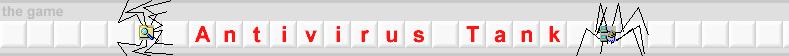 You need to deliver only one fatal blow to kill the verus boss. The virus boss lives under your screen. Sometimes it appears to walk from behind the screen and stings your tank.The virus boss is a dastard coward. It fears of shooting like death. Consequently, fire at the virus boss and it will hide under the screen until the number of the depressed viruses is smaller than about 50. This game is intended for one or two players. Press F2 to begin. You have 5 tanks but you can playing one or two tanks. The rest are the reserve tanks. During the game select new tank or exchange you like (key-F7). The spotted tank has a guided missile, a shell and a machine-gun. The green tank has a guided missile, a shell and a machine-gun. The yellow tank has a guided missile, a shell and 2 machine-guns. The fast tank has 2 machine-guns. The crushing tank has a guided missile, a shell and it can crush a veruses. You have no limits of the fire-arms. A spider virus has 8 legs. Shoot at it. If you score a direct hit, virus lose one leg. You must tear off 2-8 legs by any fire-arms. Then you will kill the virus. The wounded virus tries to pick up own legs. Be careful! There is no time to be lost. Try to kill just the wounded virus. To see the one press F11. It is show the wounded viruses inside a red circles. Deal the final blow and your screen will shake a little. F12 - put on/off the screen shake effect during the game. It means virus dies. The shell throws back the viruses a great distance away, but a machine-gun throws off the ones at short distance. There are a red-leg spiteful viruses and a black-leg quiet viruses on your screen. The spiteful viruses attack your tanks, but quiet viruses may jump on the tank only by accident. The larger number of the wounded viruses the larger number of the spiteful ones. That is of importance! Do not shoot at any virus. Look for the wounded legless or one-leg virus and finish the enemy off. Turn on the invisible tank (key-invisible). Then the red-leg spiteful viruses will not see your tank, because it is disguised. At once after shooting the tank become visible. If by accident the quiet viruse jumps on your tank it become visible too. You can turn on the invisible tank again when the one is fastened just with the skull posts. The viruses set the black skull posts and the red skull posts. You can destroy the black posts shooting any fire-arms. In contrast, you can destroy the red posts only by firing the guided missile. Fire at the skull posts and your tank will be free from the virus web. When the virus boss make four shot-holes in the tank, it will be lost. Also you will lose the tank, if the virus spiders build about 20 the black and red skulls on the posts. In this case the larger number just of the red posts the faster you will lose the tank.The limits of the number of the red posts is about 11-18:it is depends on the game level. A circles about your tank means it is in danger. Next, please select the new reserve tank if you have (key-F7). You can change type of virus scan on a window "Select type of virus scan". Press F2 and click the button "Select type of virus scan". Next please select a squares, a rectangles or a mail viruses and spams. Also you can change color of an affected parts on the window "Select type of virus scan" - click the button "Color of an affected parts". Press F11 - the affected parts look like the black rectangles. The game is over when you kill about 100 viruses and then kill the virus boss with the guided missile. It means the victory! It will be the salute to you! We shall win against any viruses and spam in the whole world! Stay clean! Good luck in the battle! Learn more how to kill enemy on 'Advice' (below) and 'Help' - 'Lessons and demonstration'. Advice 1. To select the keys you like go to "Help-Key controls". After choice press the button 2. If the strength is leaving you, hit F3 and save the game. After a good sleep press F4 to resume (load) the battle and fight the enemy with the fresh strength. It is very important the screen resolution before loading must be equivalent to the saving one. 3. Invite your friend to the game to kill the viruses with second tanks. 4. From any windows you can start the game pressing F7 like F2. During play F7 calls a window "New tanks". 5. After any change in a window "New tanks" (key-F7) an initian firing position of the tanks will be changed too. 6. In a window "New tanks" you cannot exchange of the tank number (key-F8) if any your tank is fastened. Please exchange the ones during the game. Also you cannot exchange of the numbers if one tank is a ghost after a loss. 7. In a window "New tanks" a red figures at the fighting tank buttons means number of the sitting viruses on the tank, number of the viruses draging the tank or(and) number of the the skull posts. 8. Transfer the fighting tank to the reserve if the one has many the shot-holes. At once when you see the virus docter, come back this tank to the battle from the reserve again (key-F7). 9. "Active viruses" means viruses on your screen. "Hide viruses" will come during the game. 10. During play you can exchange only the tanks free from the virus spider web and free from the virus on a tank armour too (key-F7). 11. Hold the favourite tank in rezerve until the hard time has come. 12. The virus pulling your tank just with the red cobweb drags the one. If you kill this virus, then the other pulls by the red cobweb. 13. If your guided missile is still flying, and you want to shoot again, then reloud your gun (key-Reload a missile). 14. The red cross repairs your tank. It is a docter. Pick up it and you repair your tank. 15. A black cross is surprise from the virus boss. Do not pick up it. You will get the hole, but the black cross cannot kill your tank. 16. Dodge a spiteful viruses. Often the ones becomes blind approaching your tank. Quickly dash aside, perhaps, the virus will be miss the aim. 17. If the enemy knocks the turret of your tank down, try to p